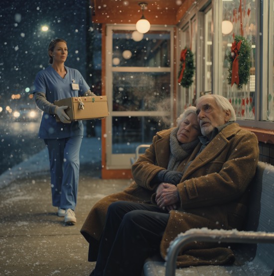 Obok niej siedział wysoki, barczysty mężczyzna, który prawdopodobnie kiedyś był potężny, zanim wiek go skurczył. Nie miał na sobie własnego płaszcza – cienkiego, starego. Owinął go wokół ramion kobiety, na jej własne, pozostawiając go w samej flanelowej koszuli. Jego duże dłonie kurczowo trzymały się ramion, a on wydmuchiwał powietrze ostrymi, widocznymi kłębami.